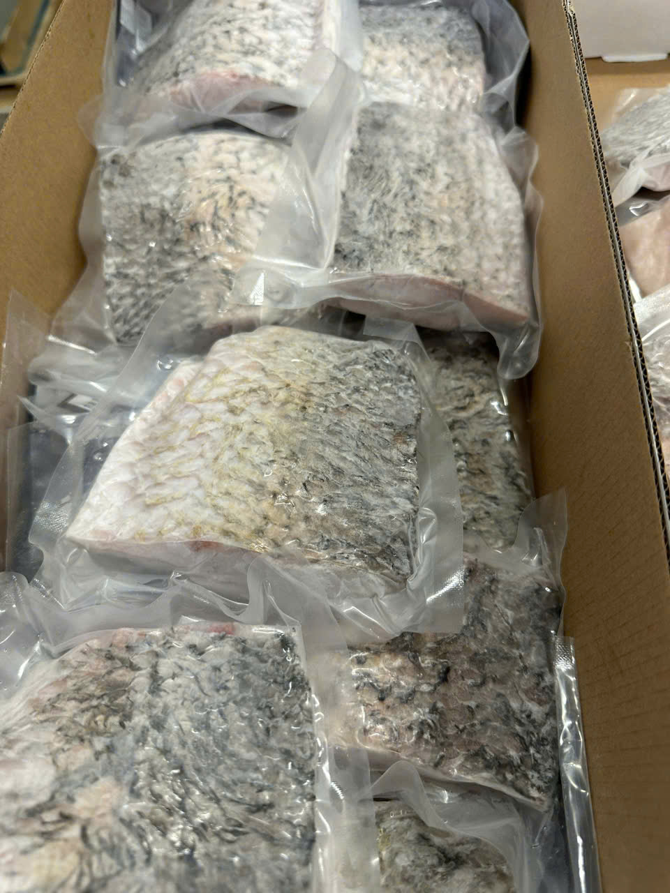 Khác với dòng phi lê bỏ da, Cá Chẽm Fillet còn da cấp đông yêu cầu kỹ thuật sơ chế cực kỳ tỉ mỉ. Lớp da cá được làm sạch vảy hoàn toàn nhưng vẫn phải giữ được độ bóng tự nhiên và không bị rách. Lớp da này đóng vai trò như một “lá chắn” tự nhiên, giữ lại toàn bộ nước ngọt và mỡ cá bên trong thớ thịt khi tiếp xúc với nhiệt. Khi được áp chảo đúng cách, lớp da sẽ trở nên vàng ruộm, giòn tan, tạo nên sự đối lập hoàn hảo với phần thịt trắng mềm mại, tan ngay trong miệng.